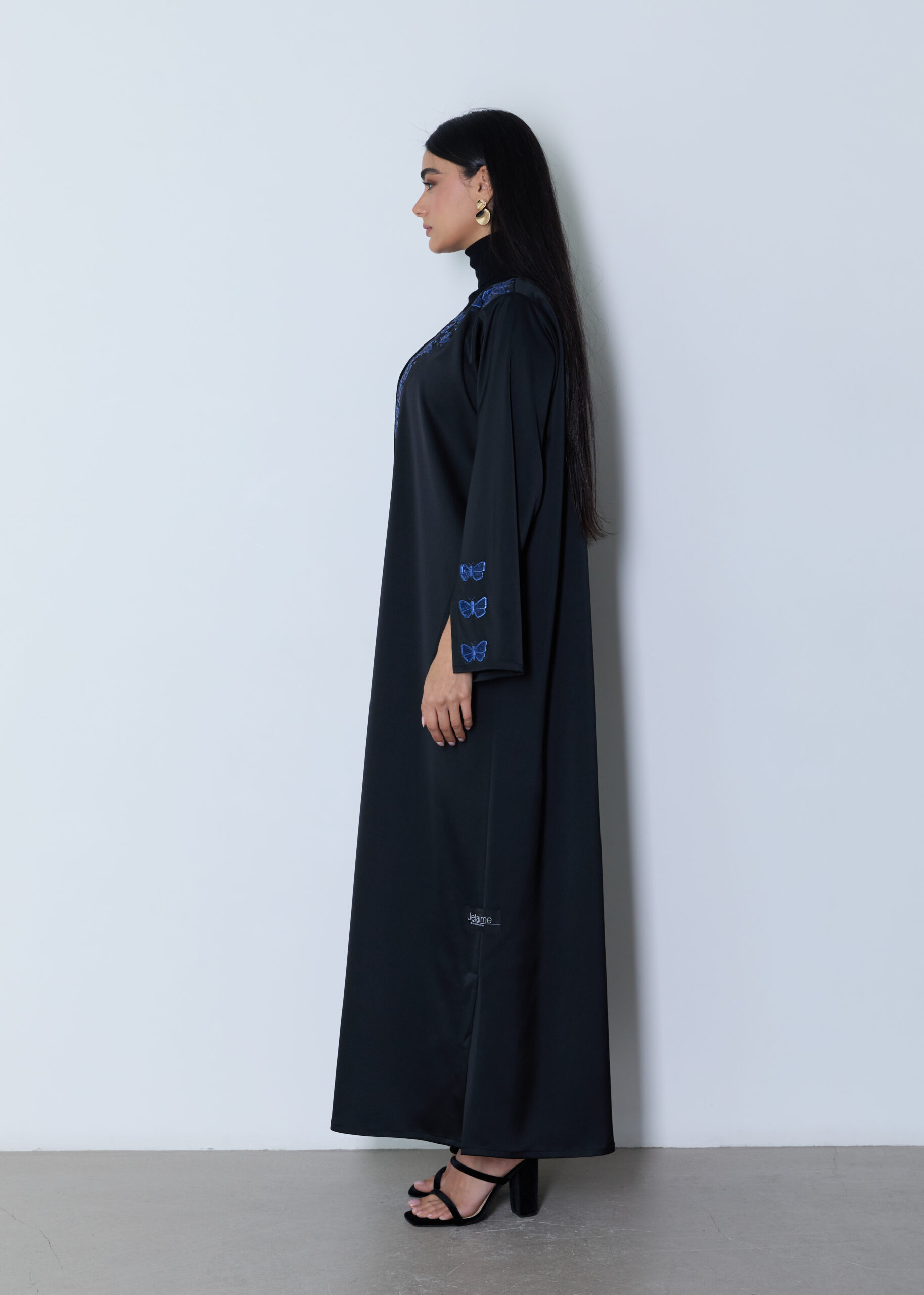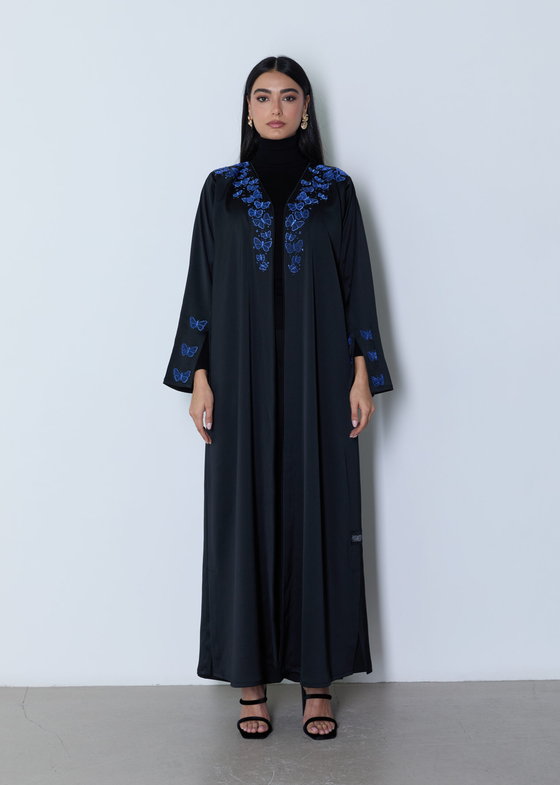 *An elegant black abaya crafted from premium fabric, featuring refined blue embroidery that adds a subtle yet striking contrast. Designed with a clean, flowing silhouette, it offers effortless comfort while maintaining a polished, sophisticated look. The delicate embroidery details on the front and sleeves enhance its timeless appeal, making it a versatile piece suitable for both everyday wear and special occasions.