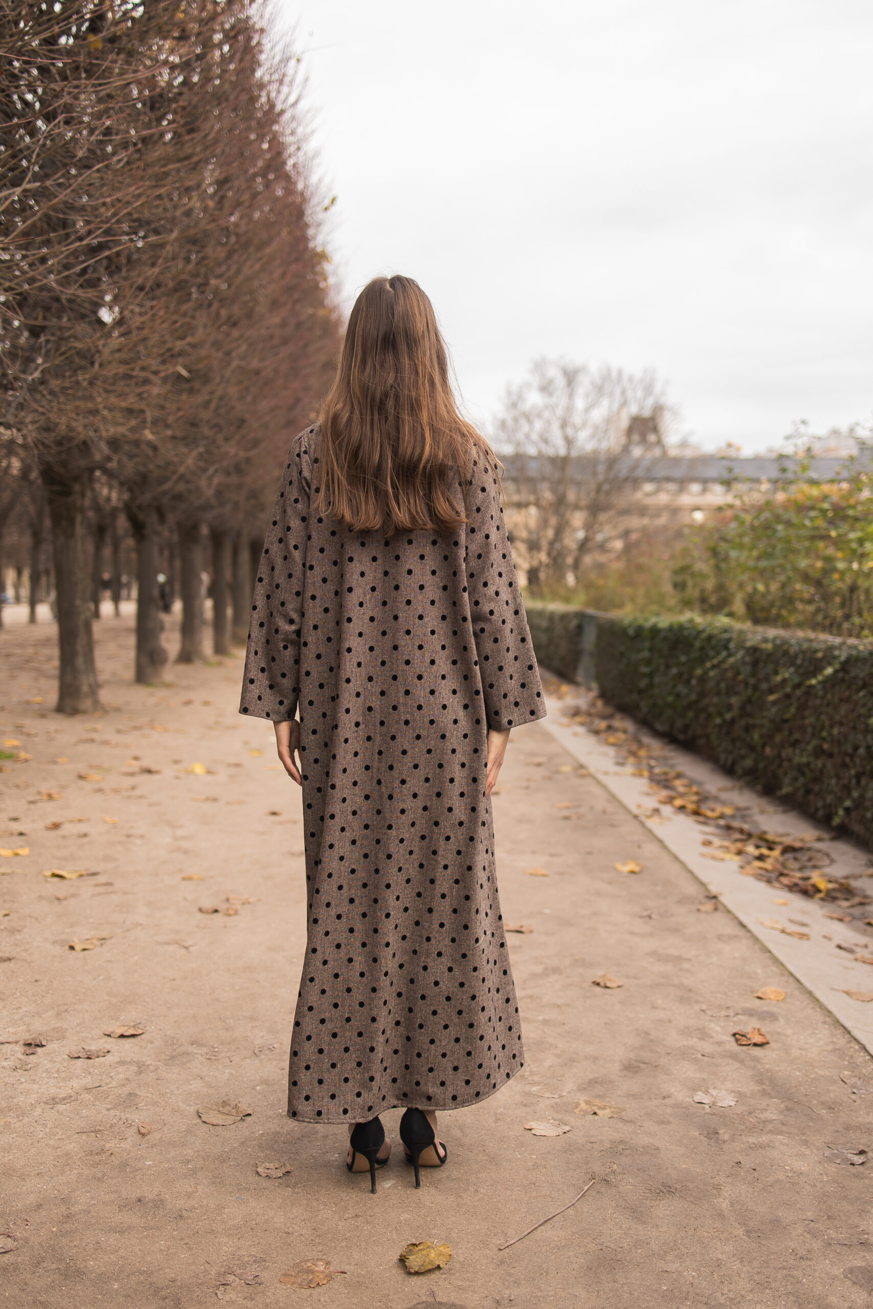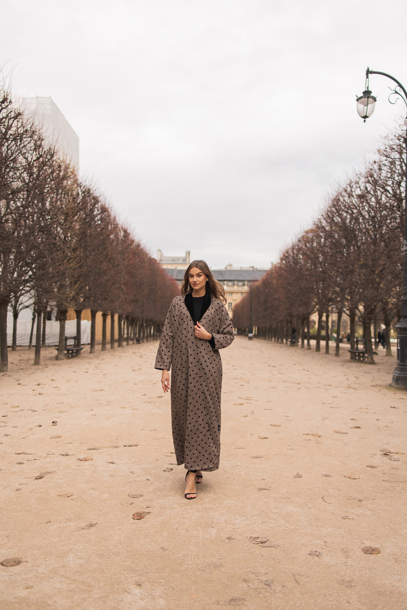 *A luxurious abaya crafted from premium Korean wool fabric, featuring delicate velvet polka dot details that add a refined feminine touch and rich texture. Enhanced with soft velvet accents, the design reflects understated elegance and sophisticated craftsmanship. A perfect balance of warmth and luxury—ideal for elegant everyday wear and elevated occasions.